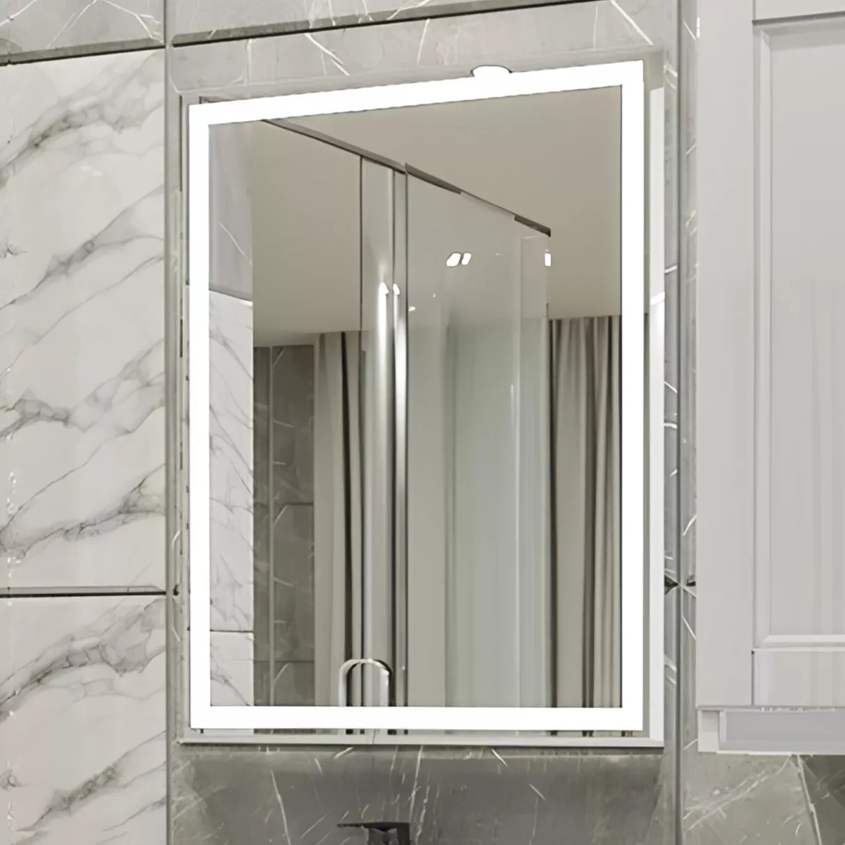 Oglindă pentru baie PS LED cu încălzire, 80x70cm