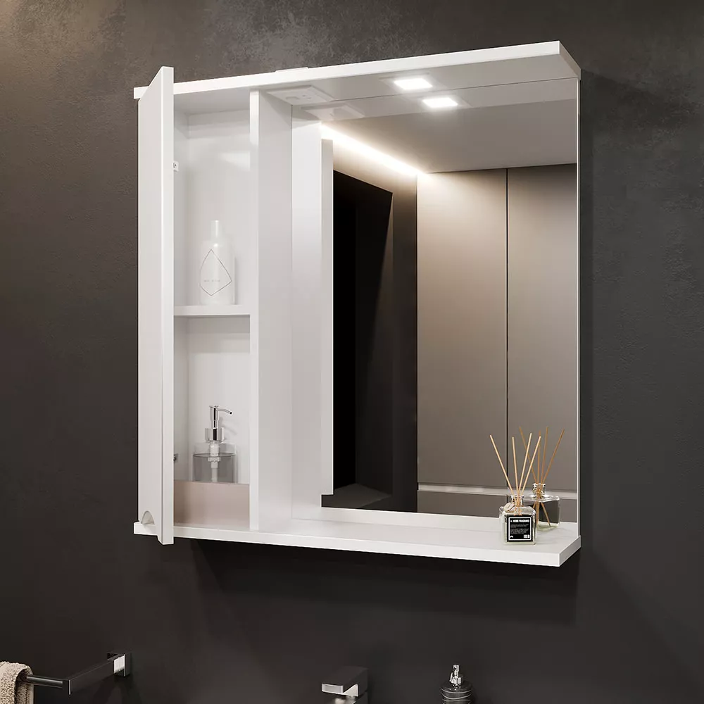 Dulap-oglindă baie Bayro Elara 65x75 stânga Alb Mat (122192)