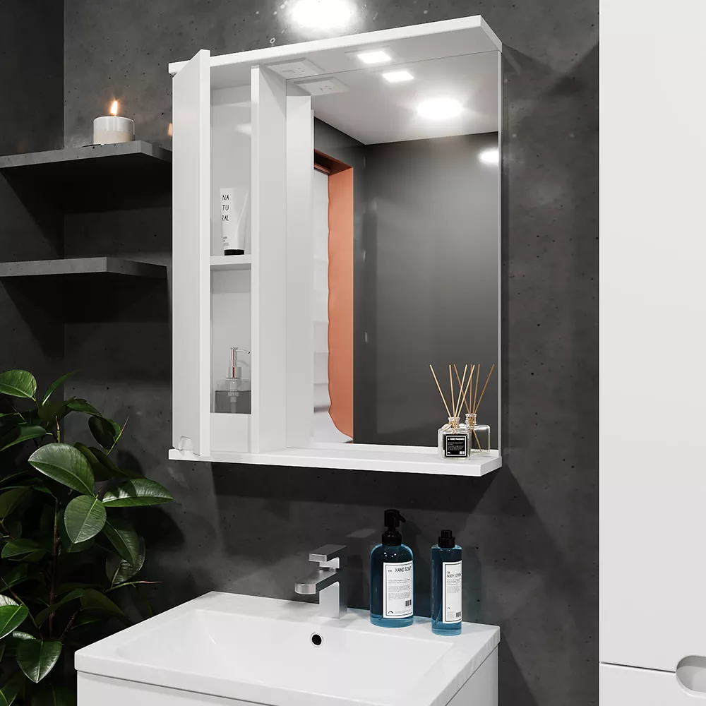 Dulap-oglindă baie Bayro Etna 60x75 stânga Alb Mat (121473)