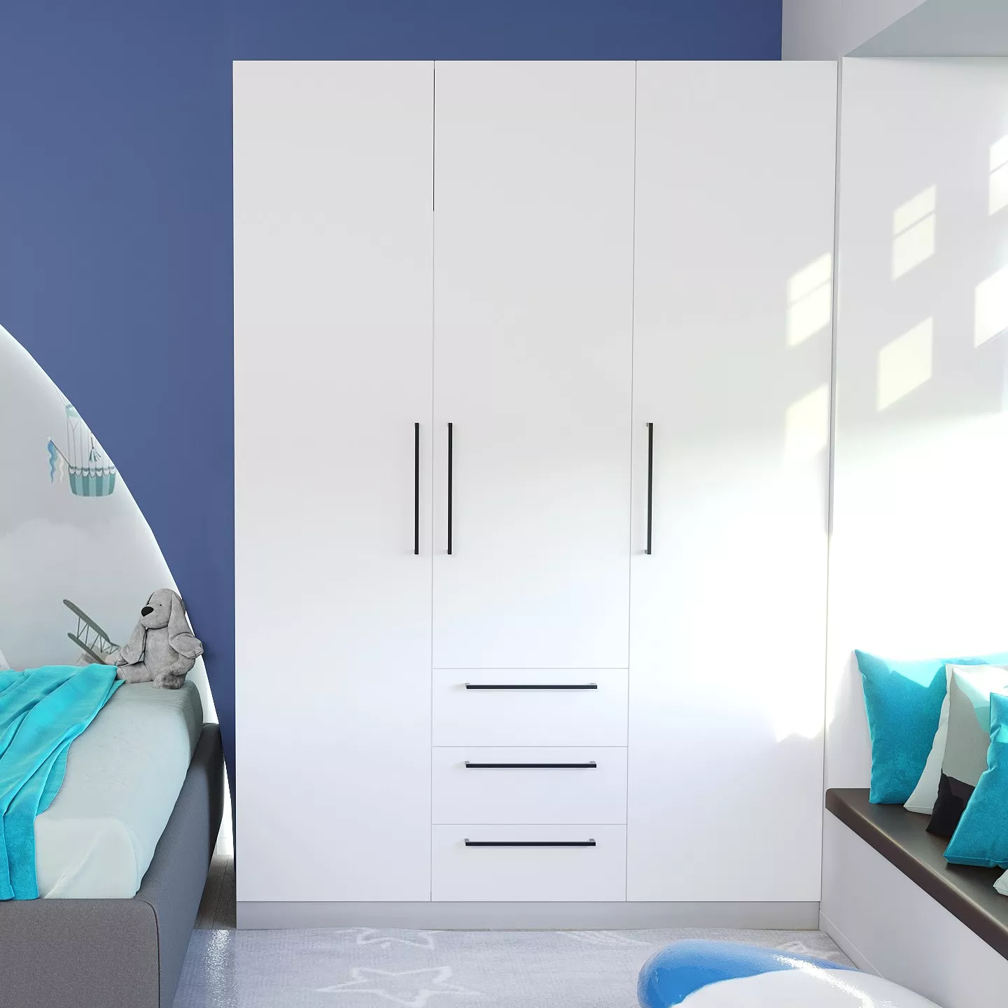 Dulap Bayro Serenity cu 3 sertare, 150x220x51,8 cm, White (608529)