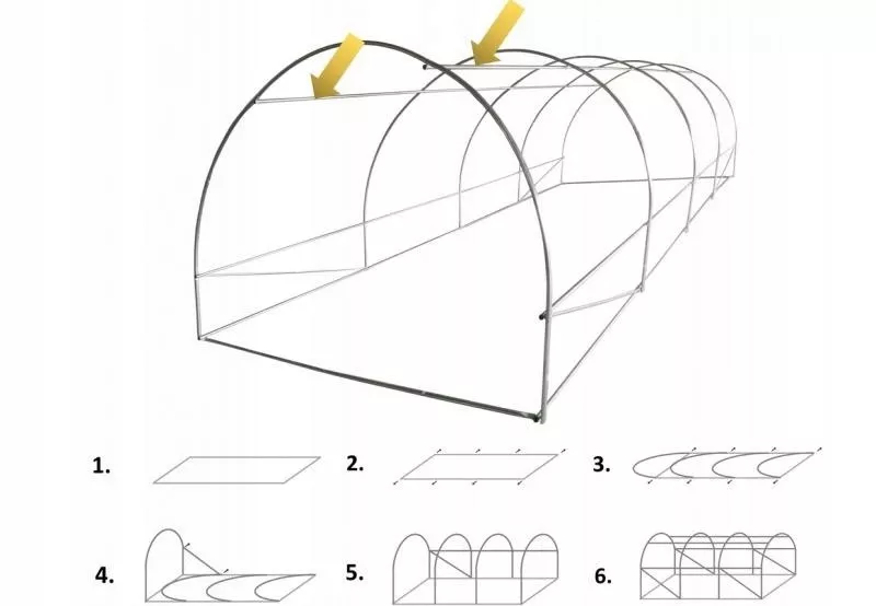 | În set | seră, cuie, arcade, cleme pentru instalare, 2 țevi suplimentare,12 cuie pentru legarea plantelor |