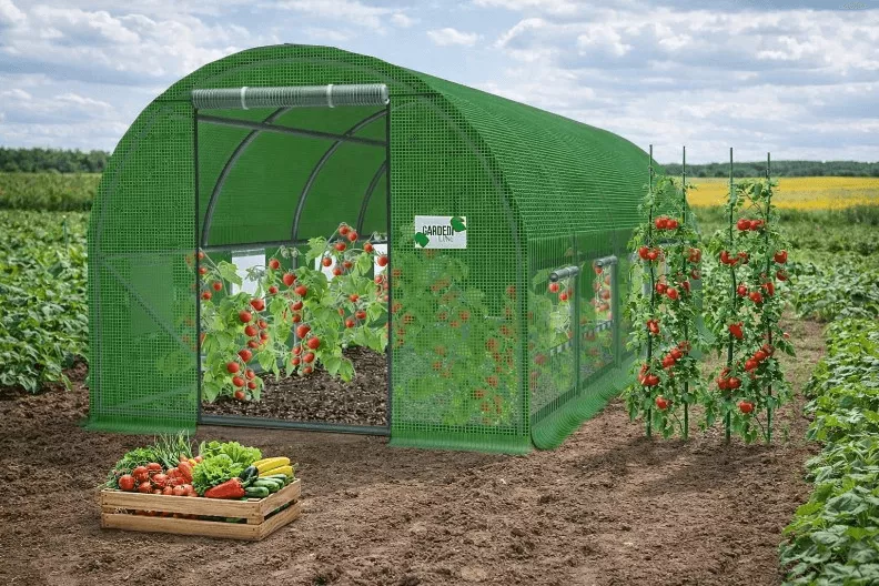 | În set | seră, cuie, arcade, cleme pentru instalare, 2 țevi suplimentare,8 cuie pentru legarea plantelor |