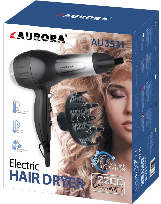 Фен Aurora AU3531, 2200 Вт, Black/Grey