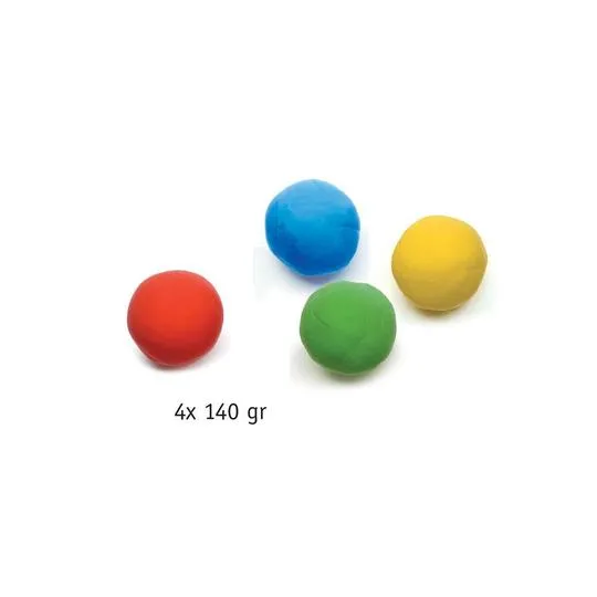 - 4 баночки с мягким пластилином (вес баночки 140 г), зеленого, желтого, красного и синего цветов