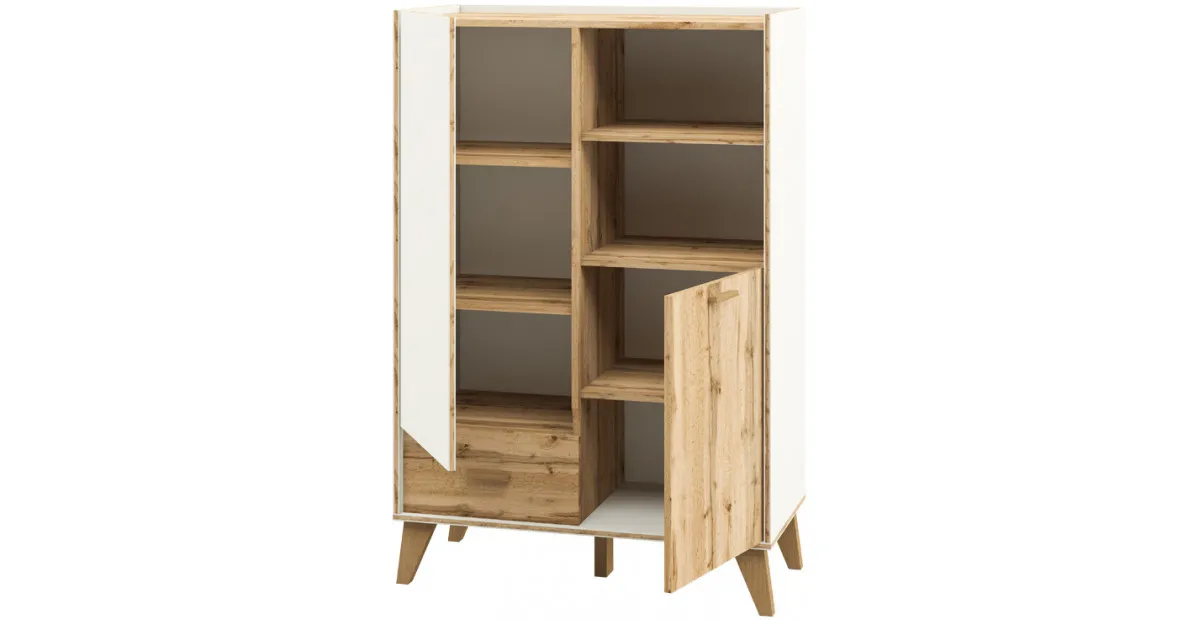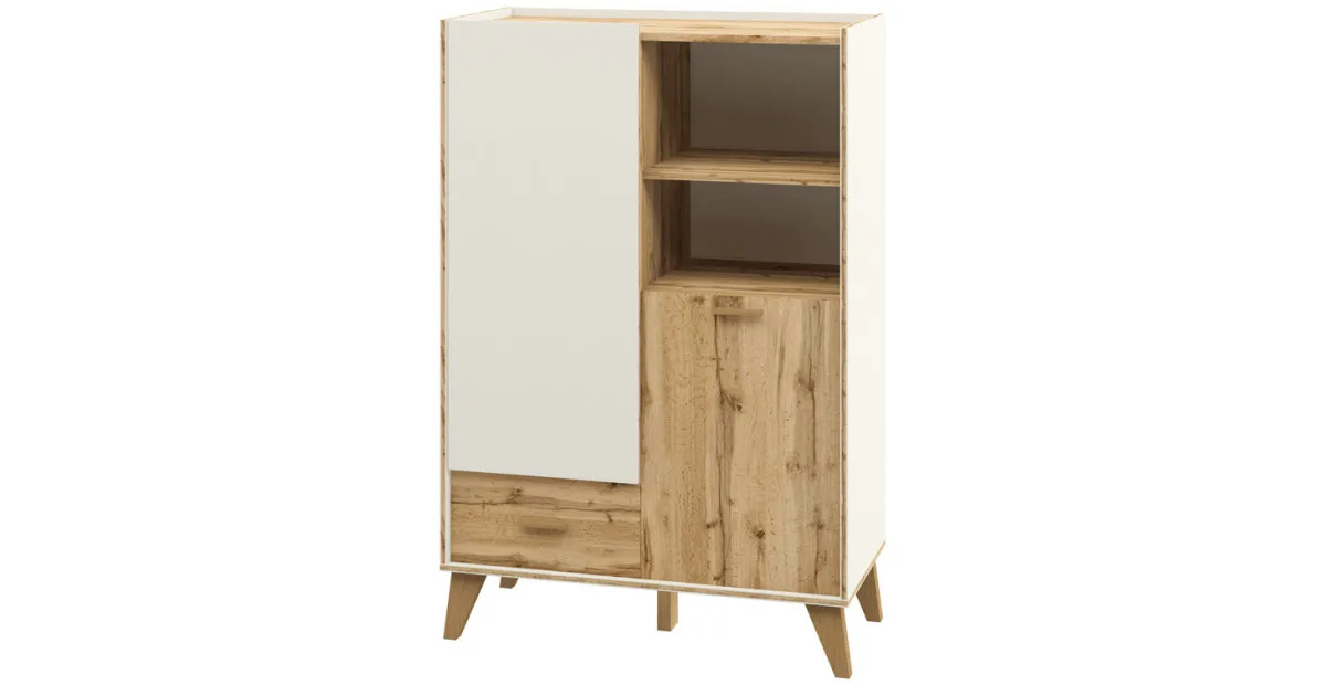 Шкаф комбинированный Neman Сканди МН-036-07 (81 см) с ящиком и дверцами, Дуб вотан / Белый