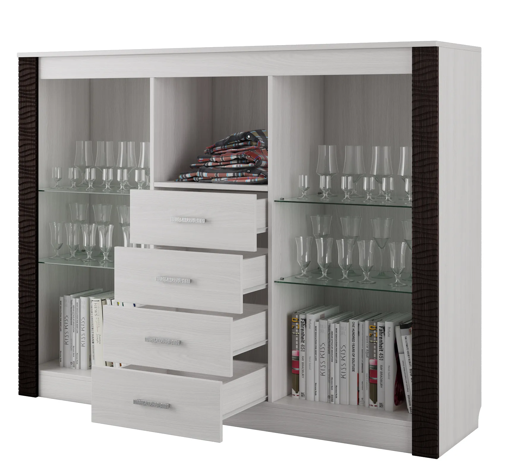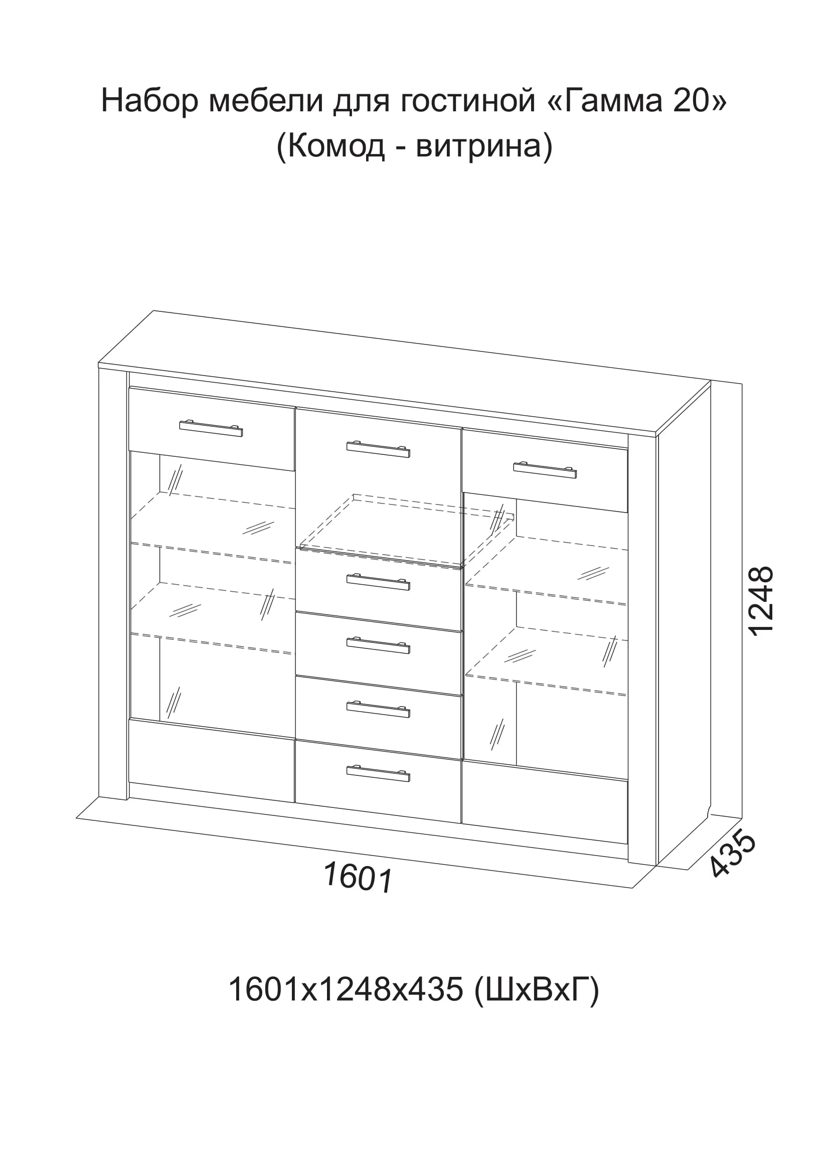 Комод с витриной SV - Мебель ГАММА 20 (160,1 см), Ясень анкор светлый / Венге