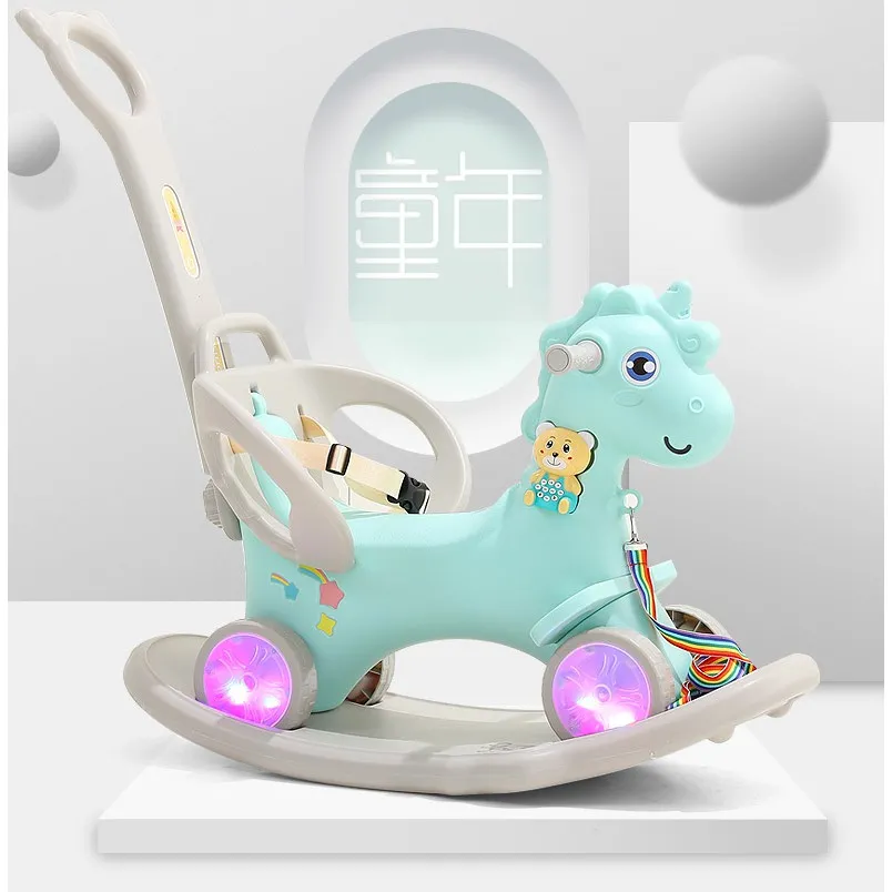 - У лошадки есть платформа, на которой она качается и которая после снятия превращает красивую лошадку-качалку в транспортное средство без педалей;