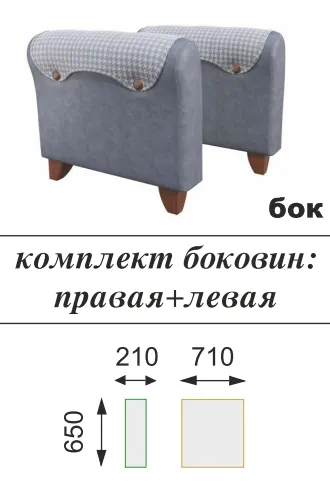 Комплект боковин:правая+левая Олмеко Элегант 65 x 21 cm, замша баффало серо-синяя/шанель сирень