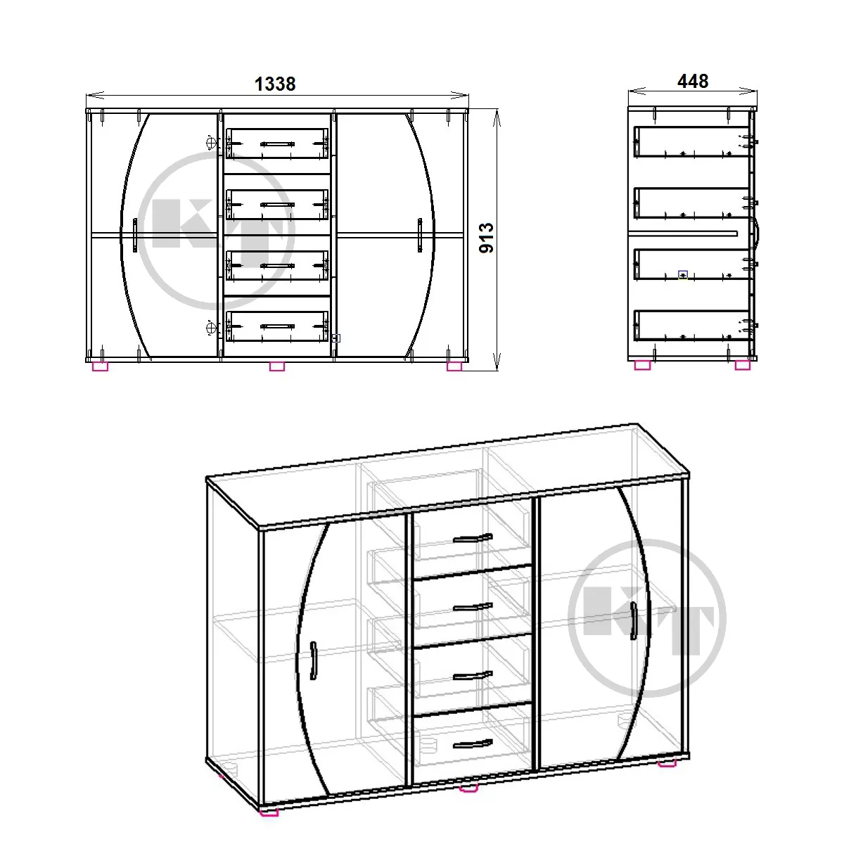 Комод Kompanit 4-2-2 (133,8 см), Дуб сонома