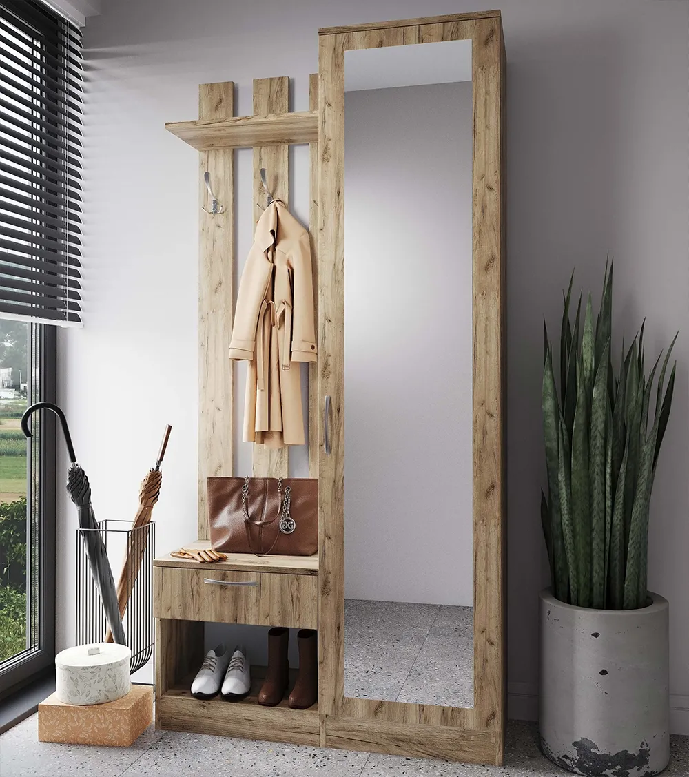 Прихожая ML-Mobila ML-8 правая, с зеркалом (100 см), Дуб Золотой