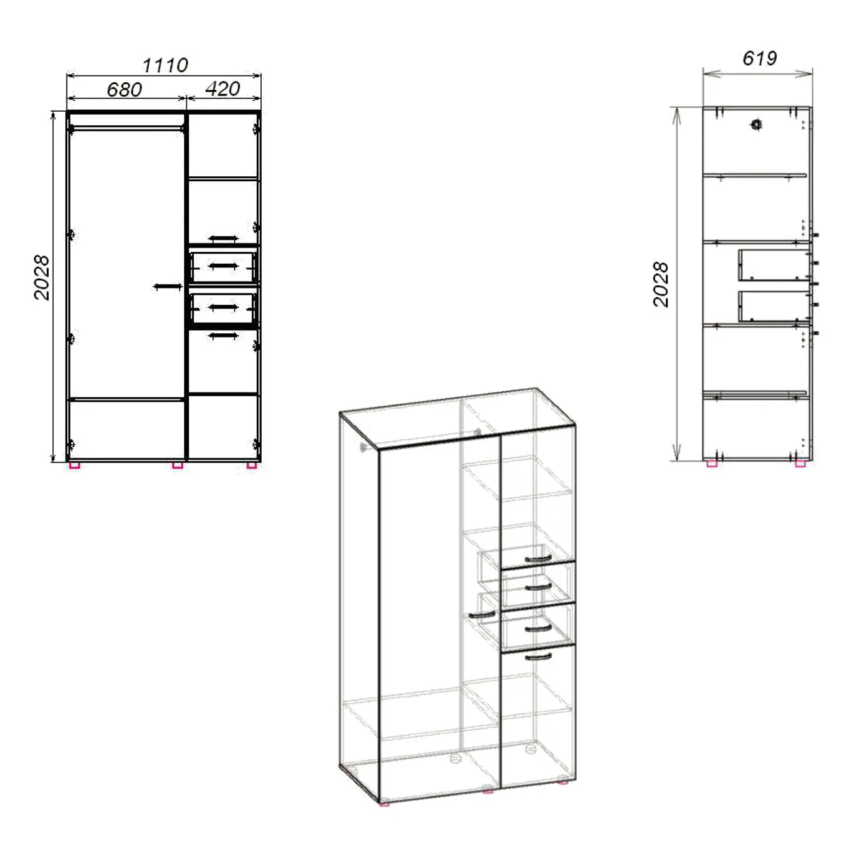 | Тип шкафа | Со штангой, полками и выдвижными ящиками |