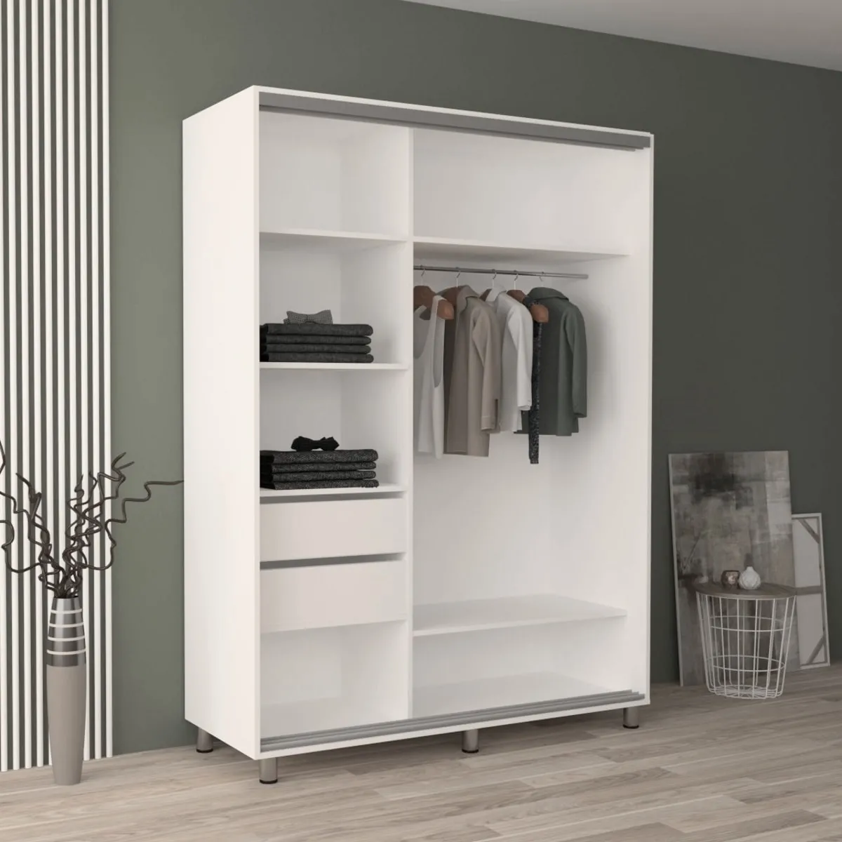 Шкаф купе Mobildor Aron (110x240) зеркальные раздвижные двери, White
