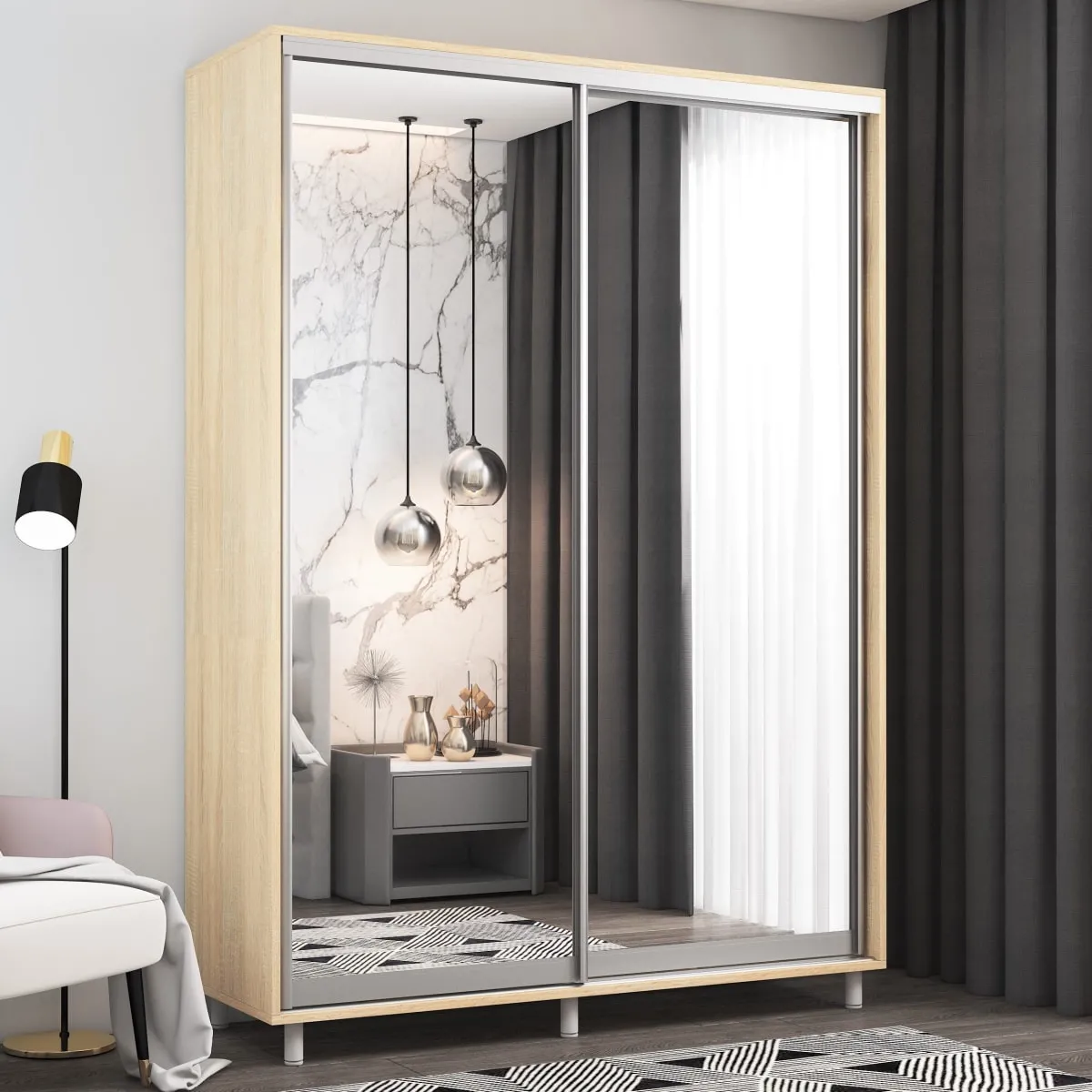 Шкаф купе Mobildor Aron (140x200) зеркальные раздвижные двери, Sonoma