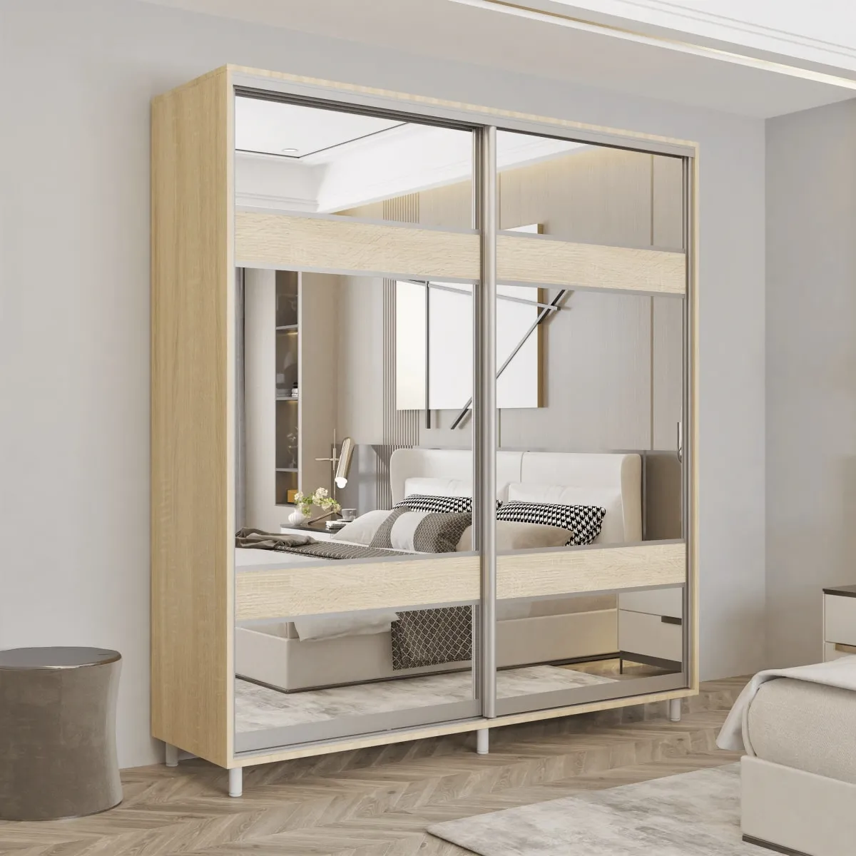 Шкаф купе Mobildor Aron P K3 (110x240) раздвижные двери из ДСП с зеркалом зебра, Sonoma
