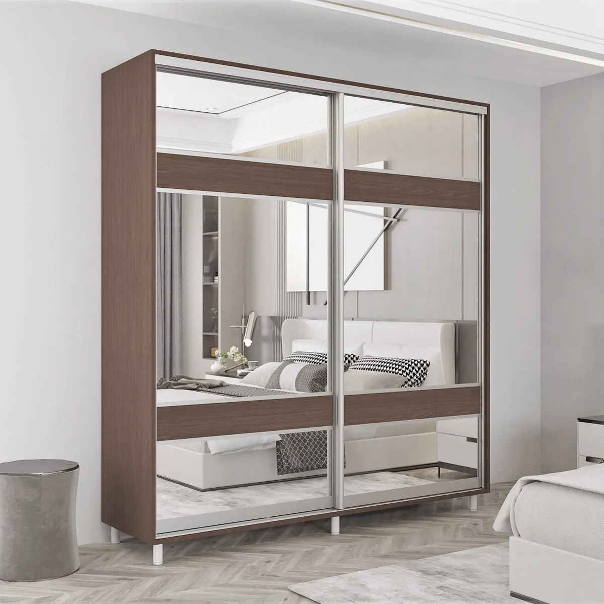 Шкаф купе Mobildor Aron P K3 (160x200) раздвижные двери из ДСП с зеркалом зебра, Wenge