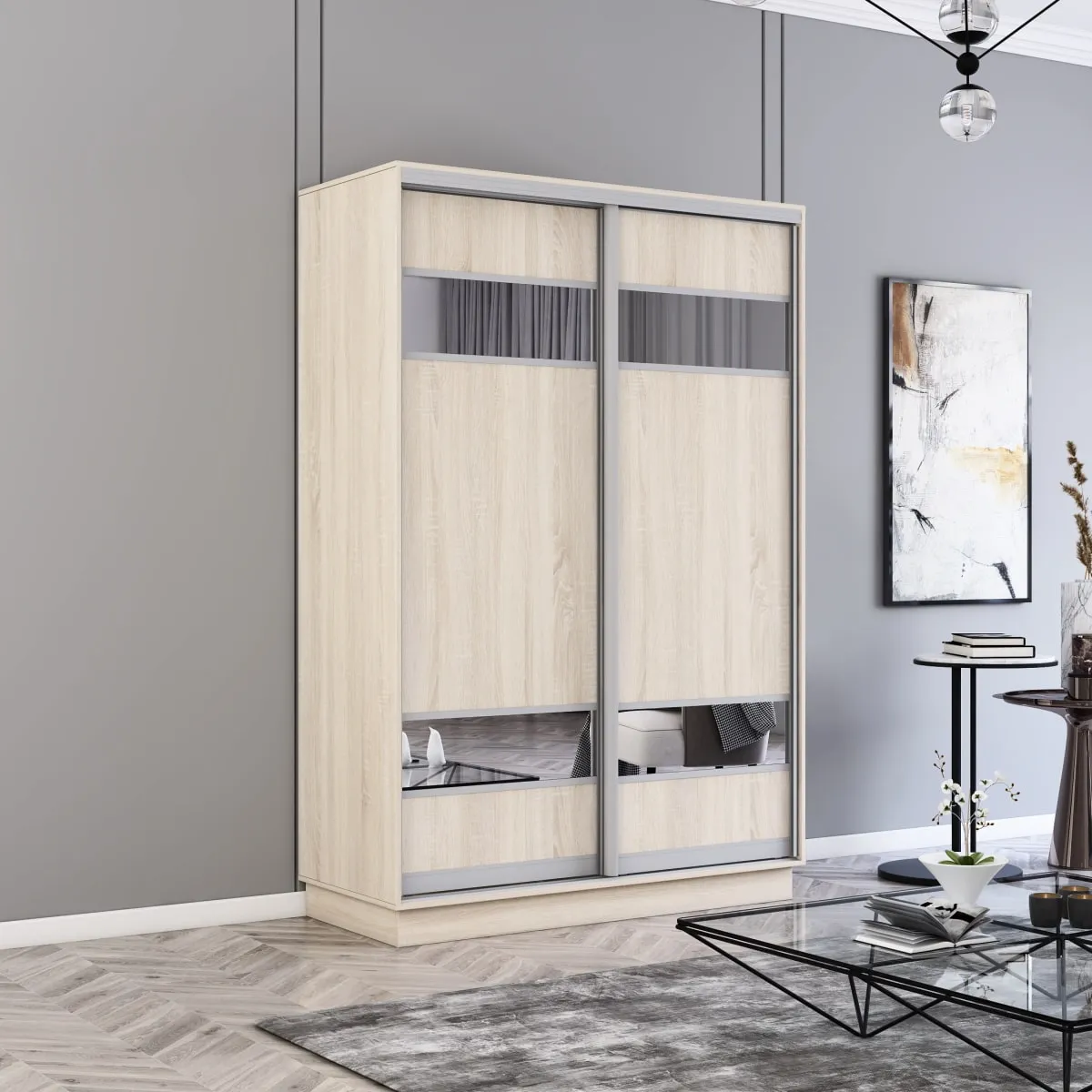 Шкаф купе Mobildor Fox (100x200) раздвижные двери ДСП с зеркальными элементами, Sonoma