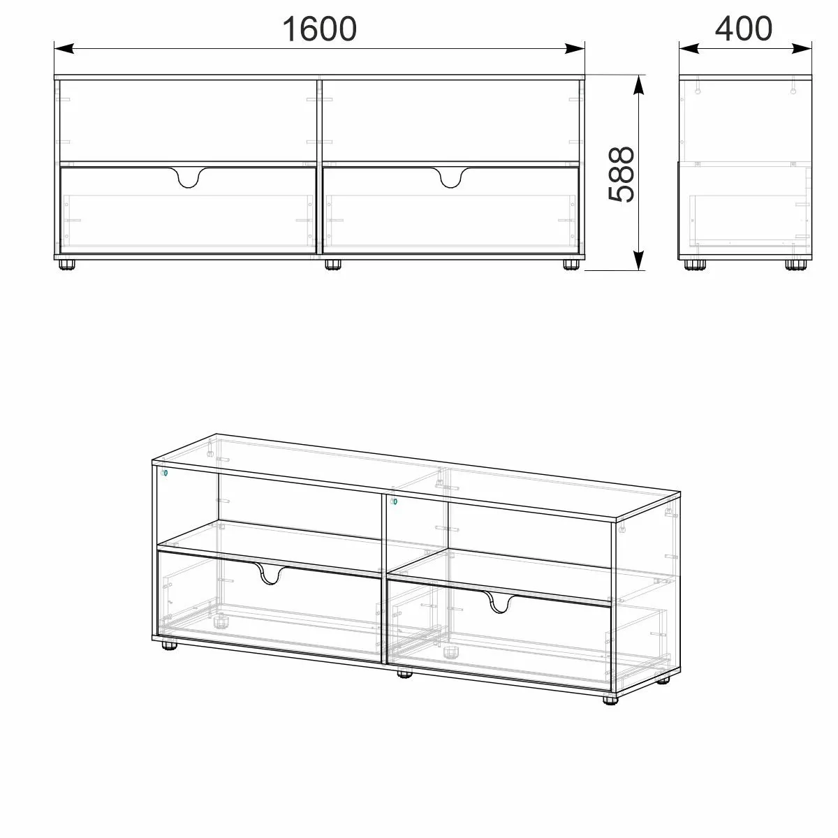 | Число выдвижных ящиков | 2 |