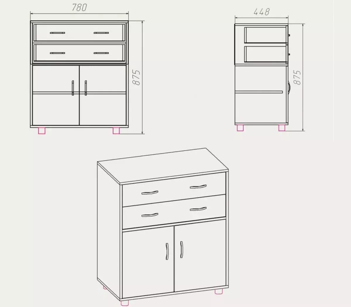Комод Kompanit 2+2 (78,4 см), дуб сонома