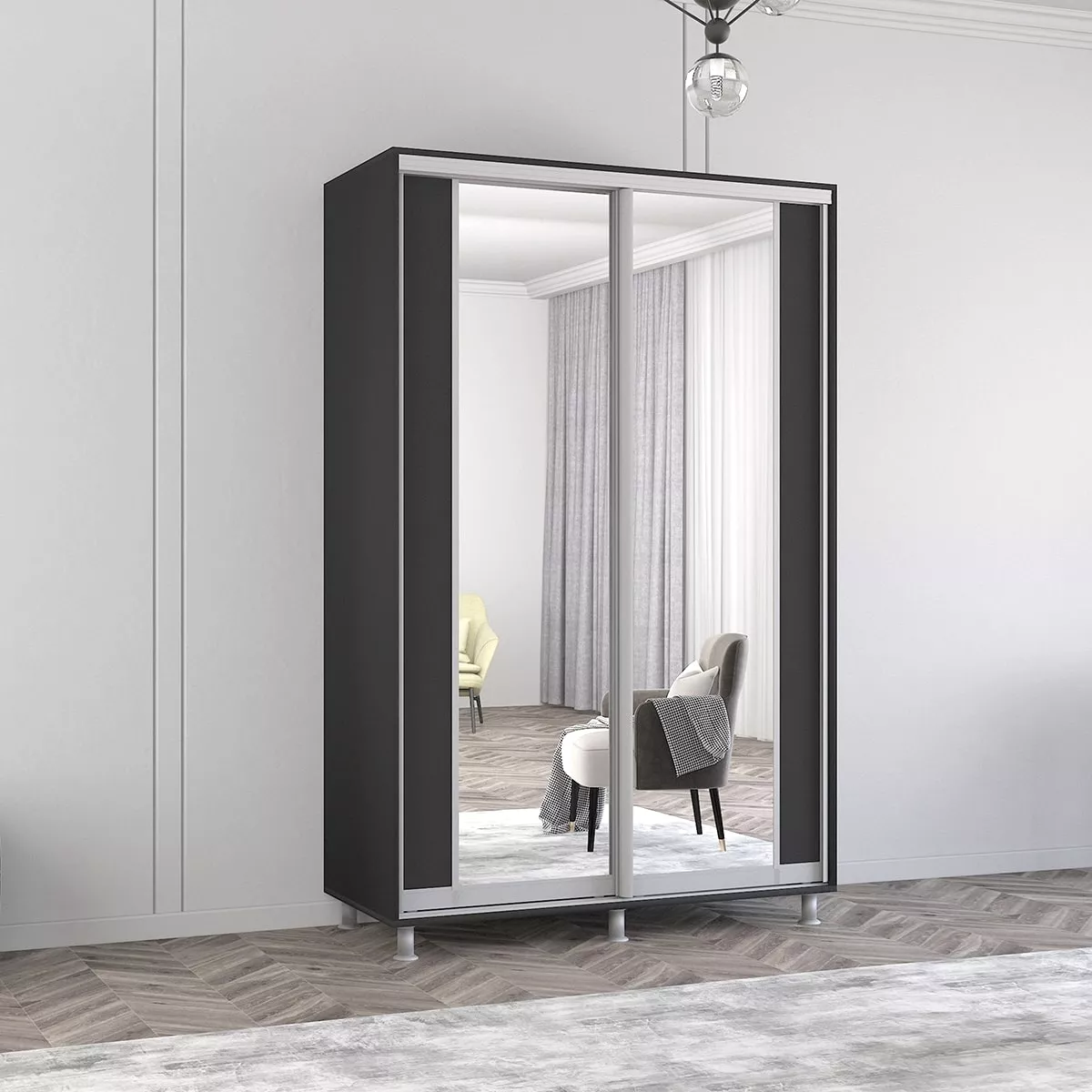Шкаф купе Mobildor Aron K2 (100x230) раздвижные двери из ДСП с зеркалом вертикально, Anthracite