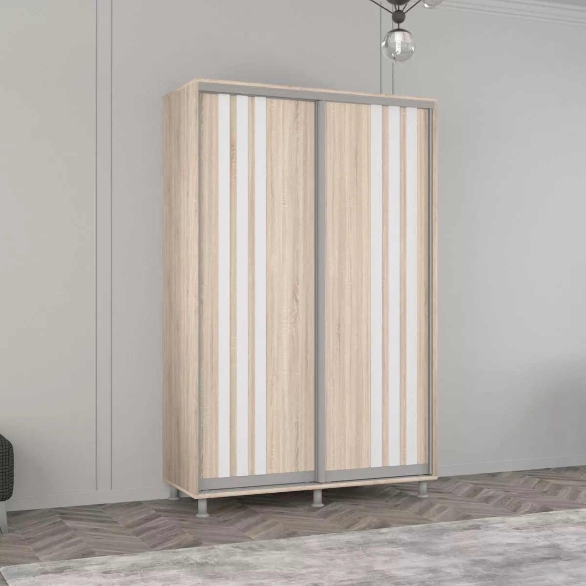 Шкаф купе Mobildor Aron (150x200) раздвижные двери из ЛДСП с ламелями, Sonoma