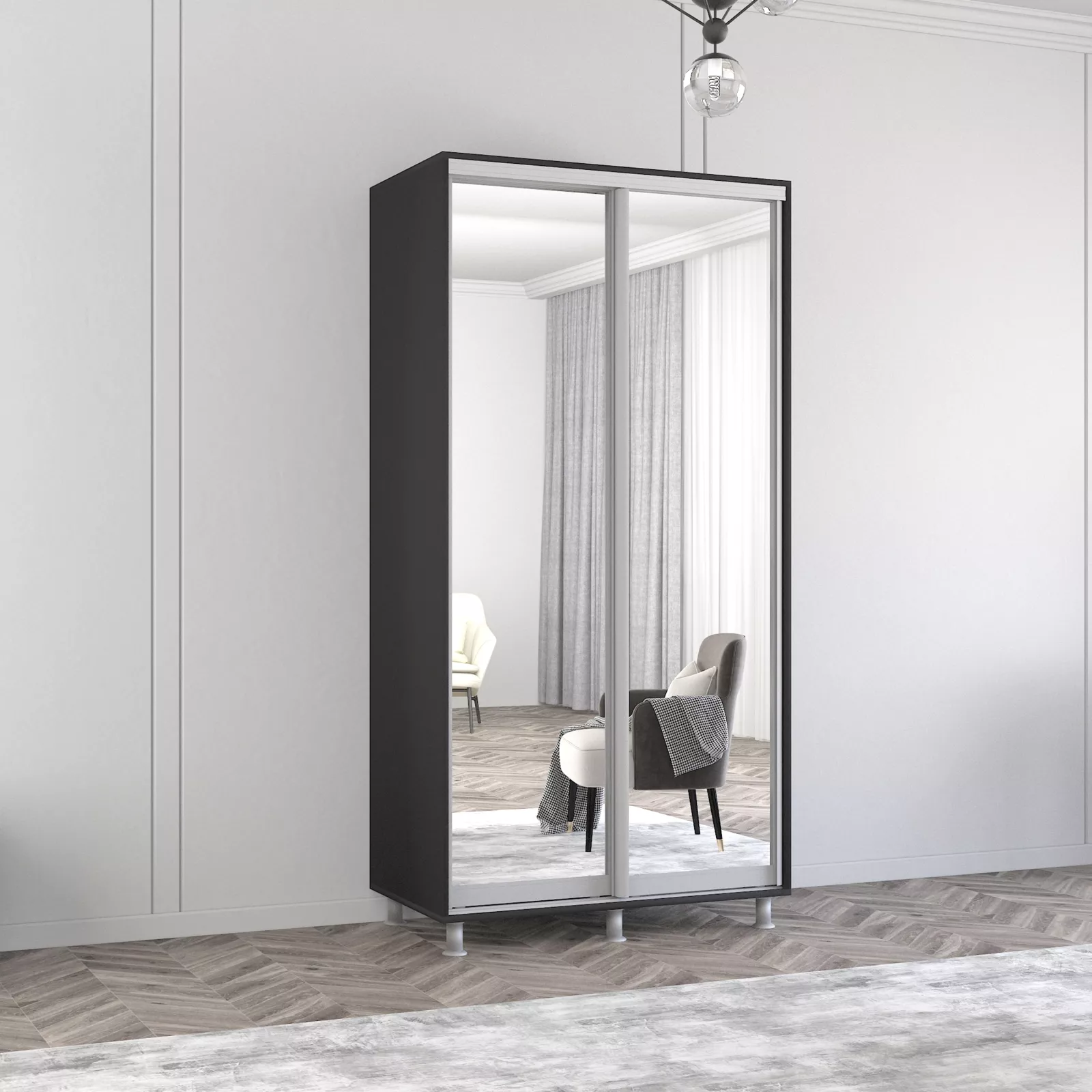 Шкаф купе Mobildor Aron (110x200) зеркальные раздвижные двери, Anthracite