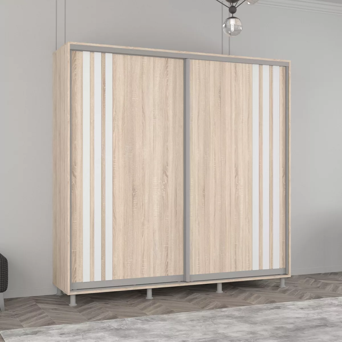 Шкаф купе Mobildor Aron (220x200) раздвижные двери из ЛДСП с ламелями, Sonoma