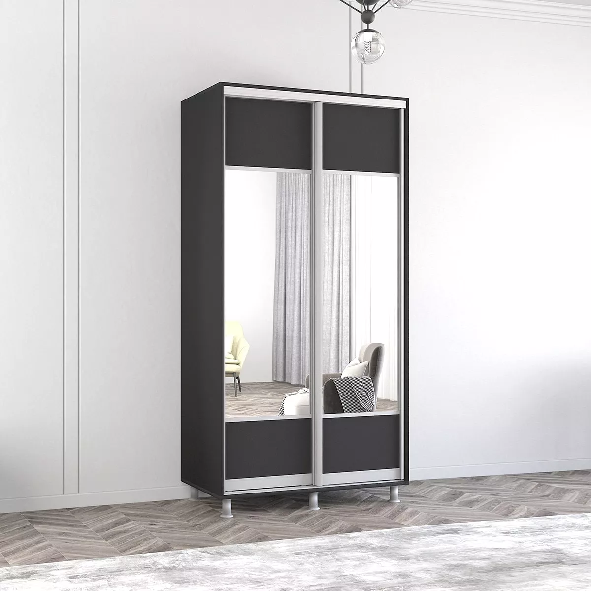 Шкаф купе Mobildor Aron P K1 (100x240) раздвижные двери ДСП с зеркалом горизонтально, Anthracite