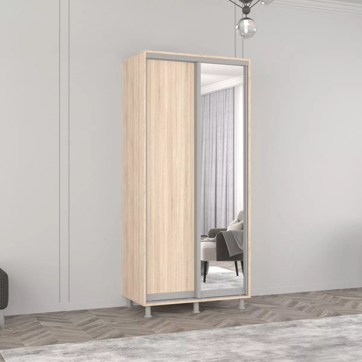 Шкаф купе Mobildor Aron P (110x210) раздвижные зеркальные двери и ДСП, Sonoma