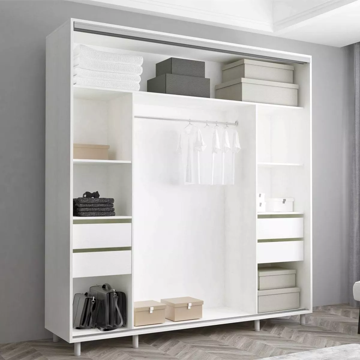 Шкаф купе Mobildor Aron S (200x230) раздвижные зеркальные двери и ДСП, White