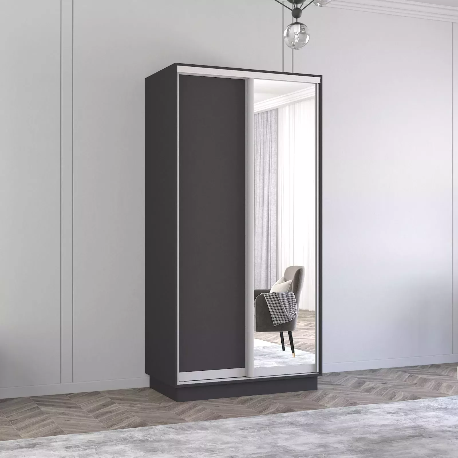 Шкаф купе Mobildor Fox (110x210) раздвижные зеркальные двери и ДСП, Anthracite