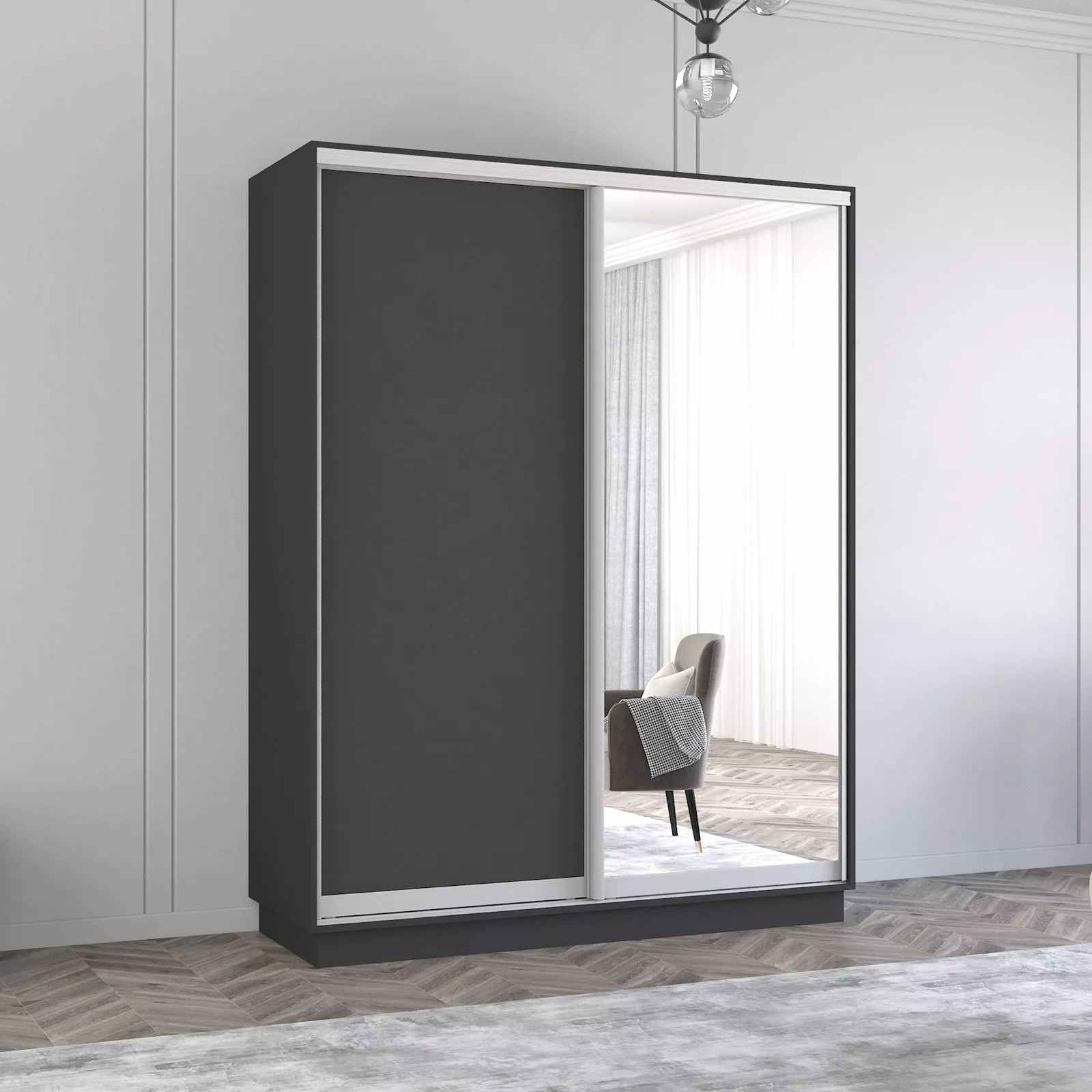Шкаф купе Mobildor Fox (160x240) раздвижные зеркальные двери и ДСП, Anthracite