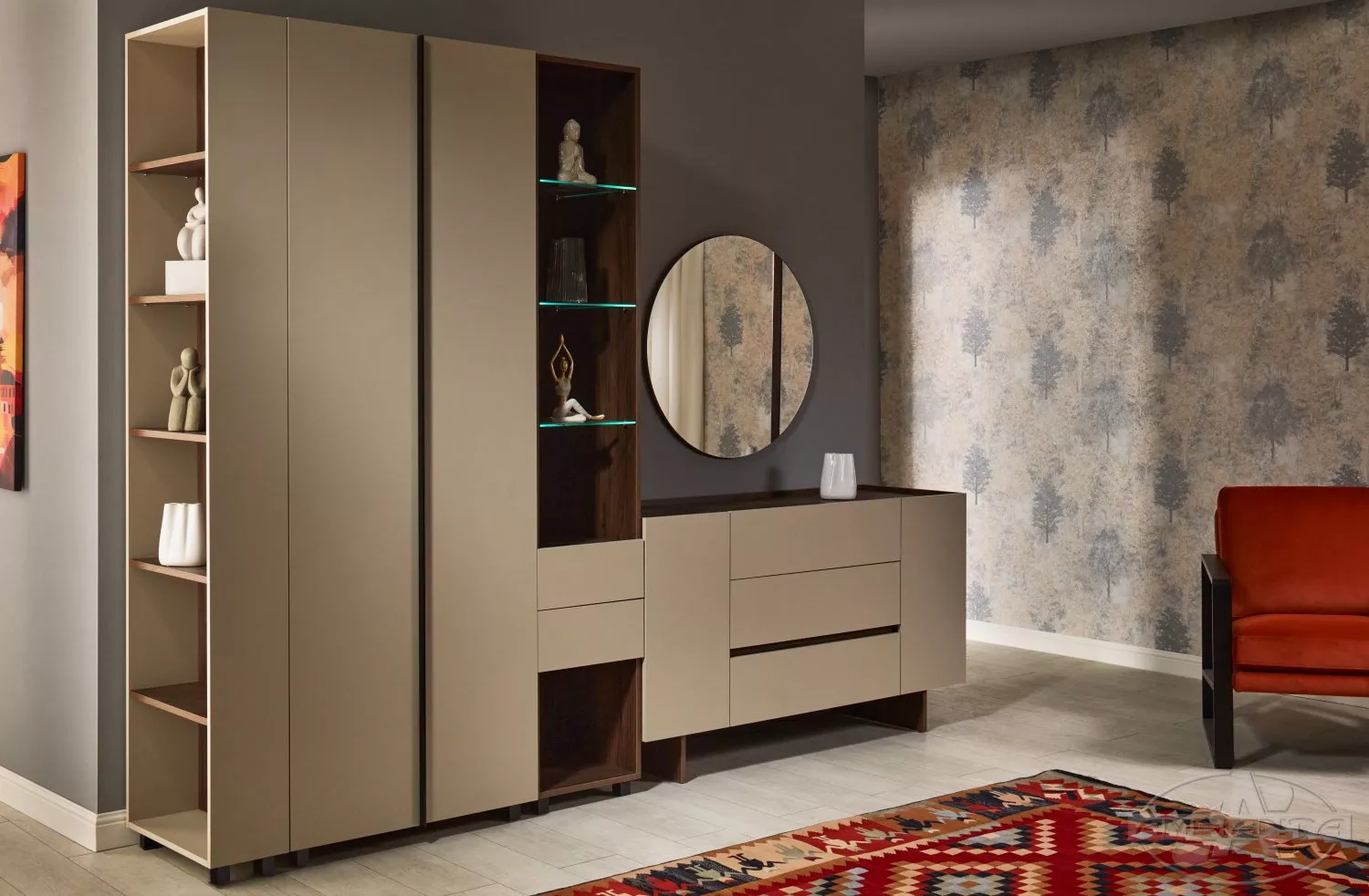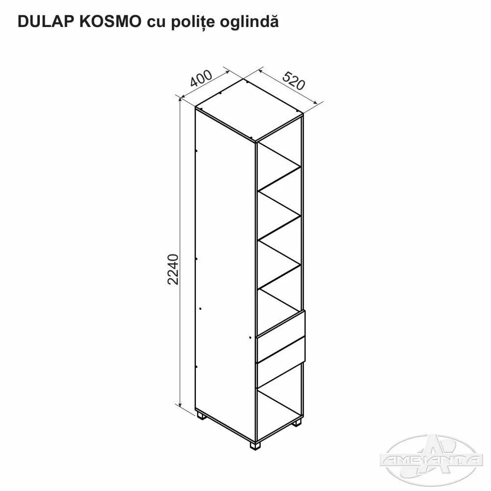 Пенал Ambianta Kosmo (40 см) с полками из стекла, Catania/Fungo