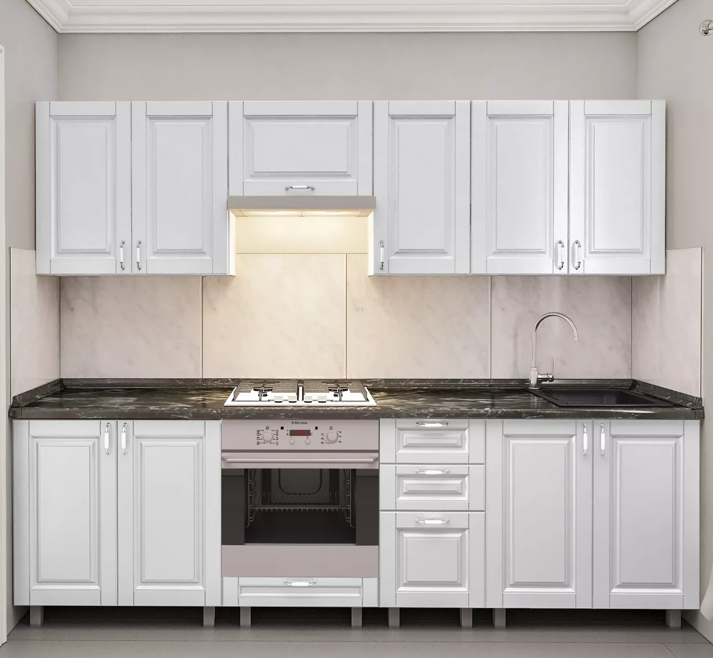Кухня Bafimob Юля 2.6 м, МДФ крашенный, фасад Классик, Белый матовый
