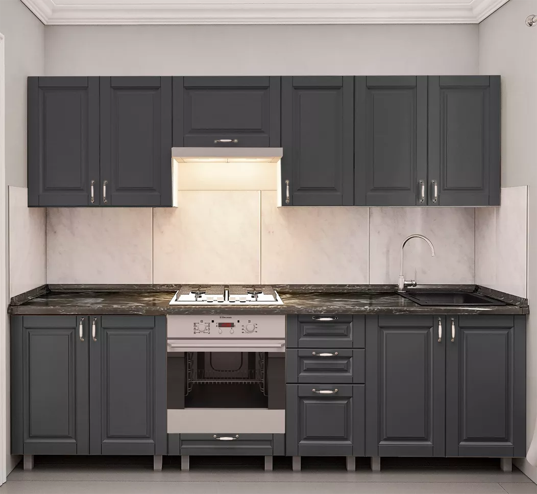 Кухня Bafimob Юля 2.6 м, МДФ крашенный, фасад Классик, Серый матовый