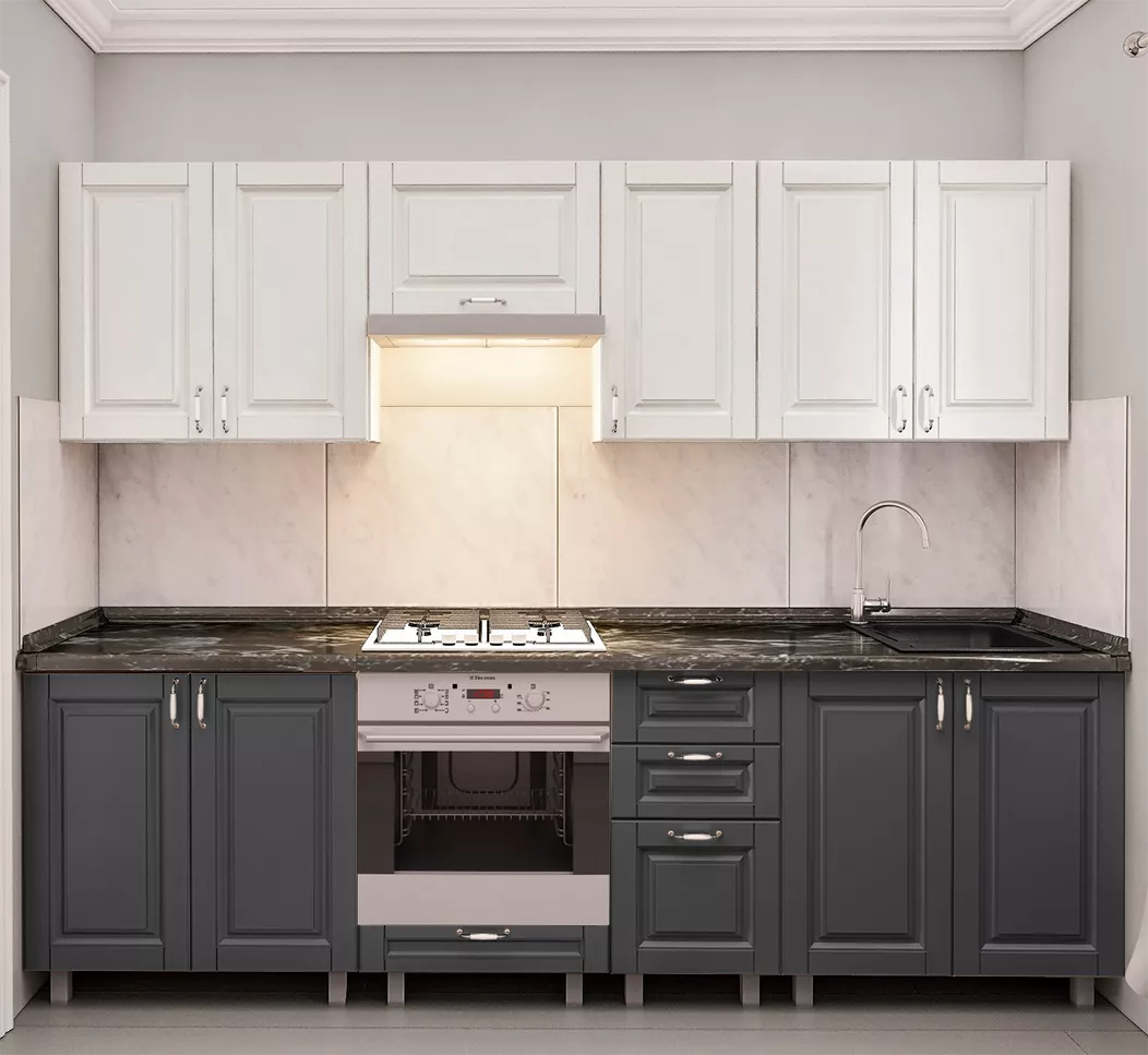 Кухня Bafimob Юля 2.6 м, МДФ крашенный, фасад Классик, Белый-матовый/Серый-матовый