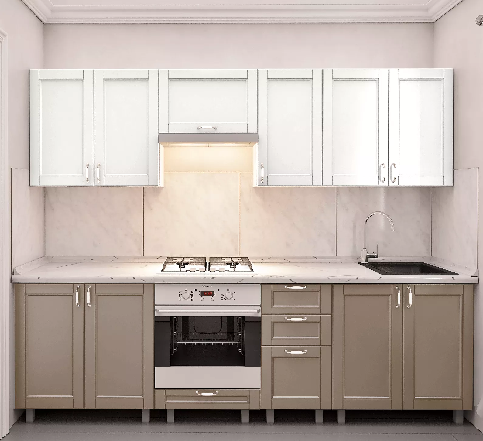Кухня Bafimob Юля 2.6 м, МДФ крашенный, фасад Модерн, Белый-матовый/Капучино-матовый
