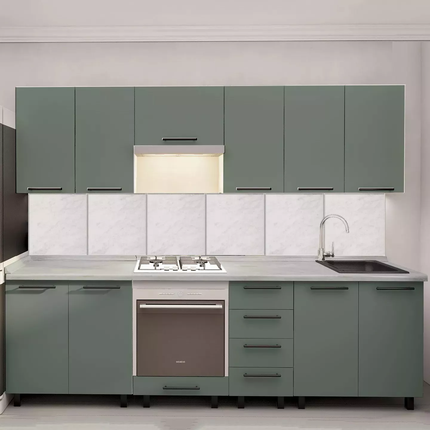 Кухня Bafimob Юлия 2.6 м, МДФ, с фасадами из матовых панелей AGT (Trendy Panel) Салатовый матовый (735 Relax Green)