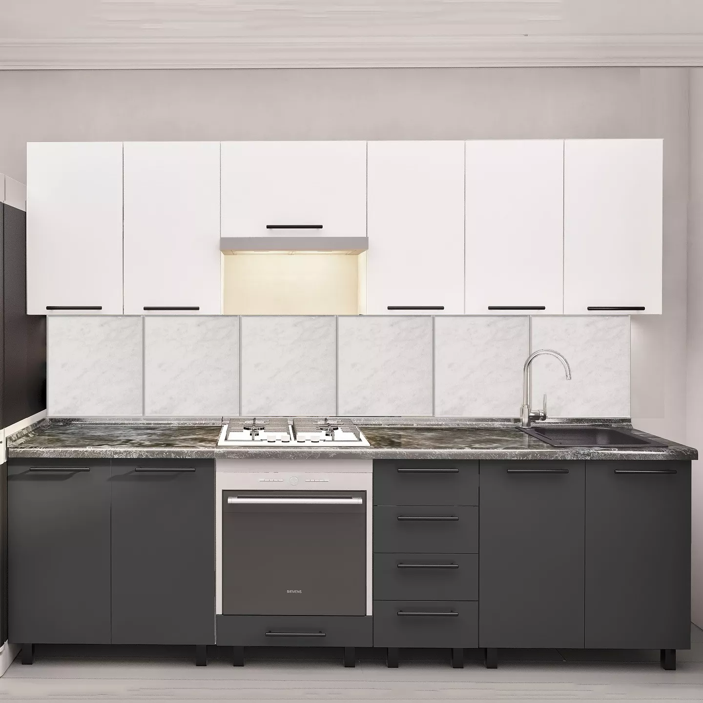 Кухня Bafimob Юлия 2.6 м, МДФ, с фасадами из матовых панелей AGT (Trendy Panel) Белый-матовый (734 White)/Серый-матовый (726 Storm Grey)