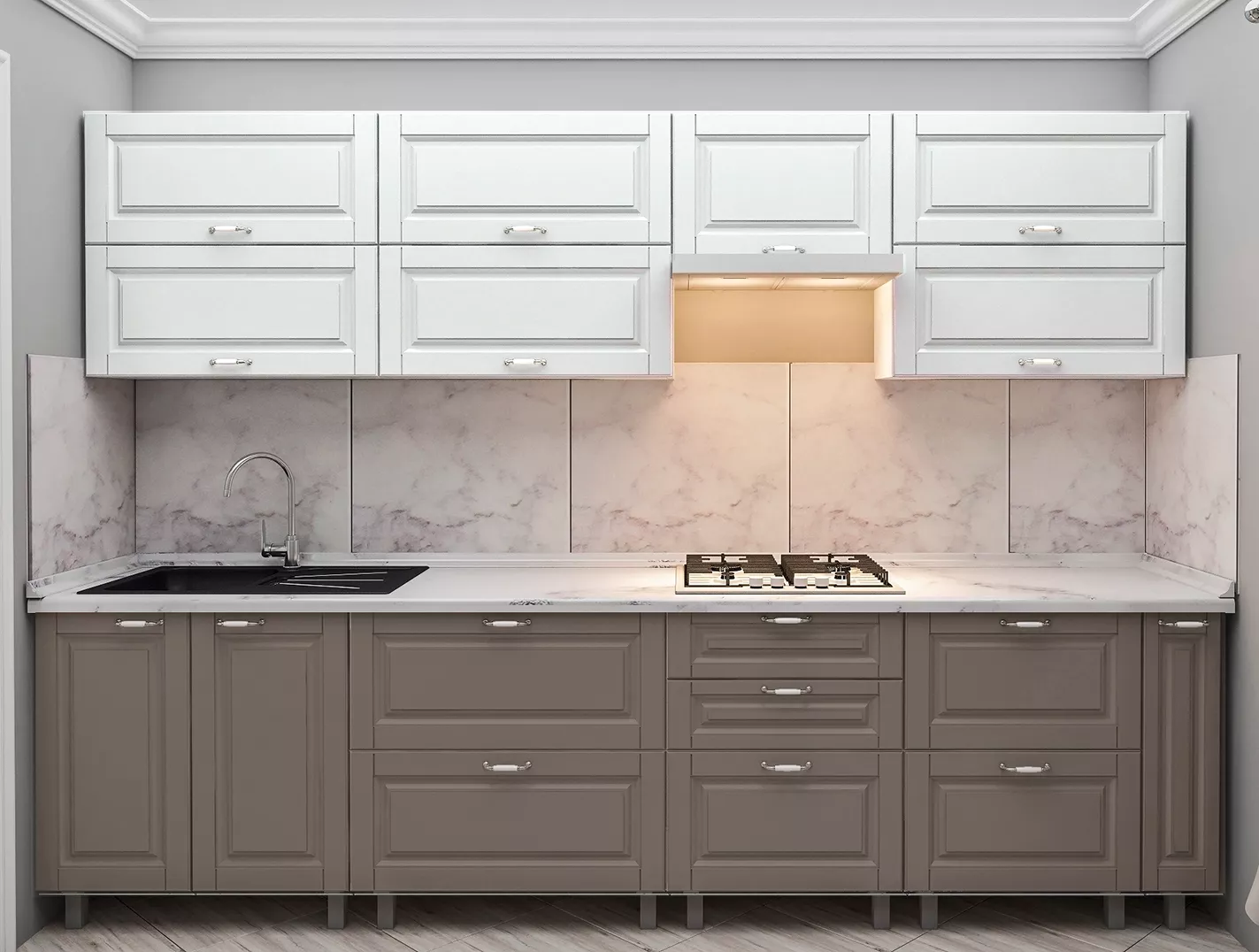 Кухня Bafimob Квадро 3.0 м, МДФ крашенный, фасад Классик, Белый-матовый/Капучино-матовый