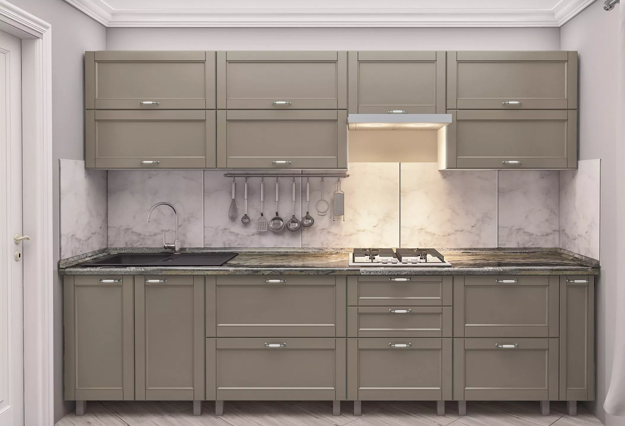 Кухня Bafimob Квадро 3.0 м, МДФ крашенный, фасад Модерн, Капучино матовый