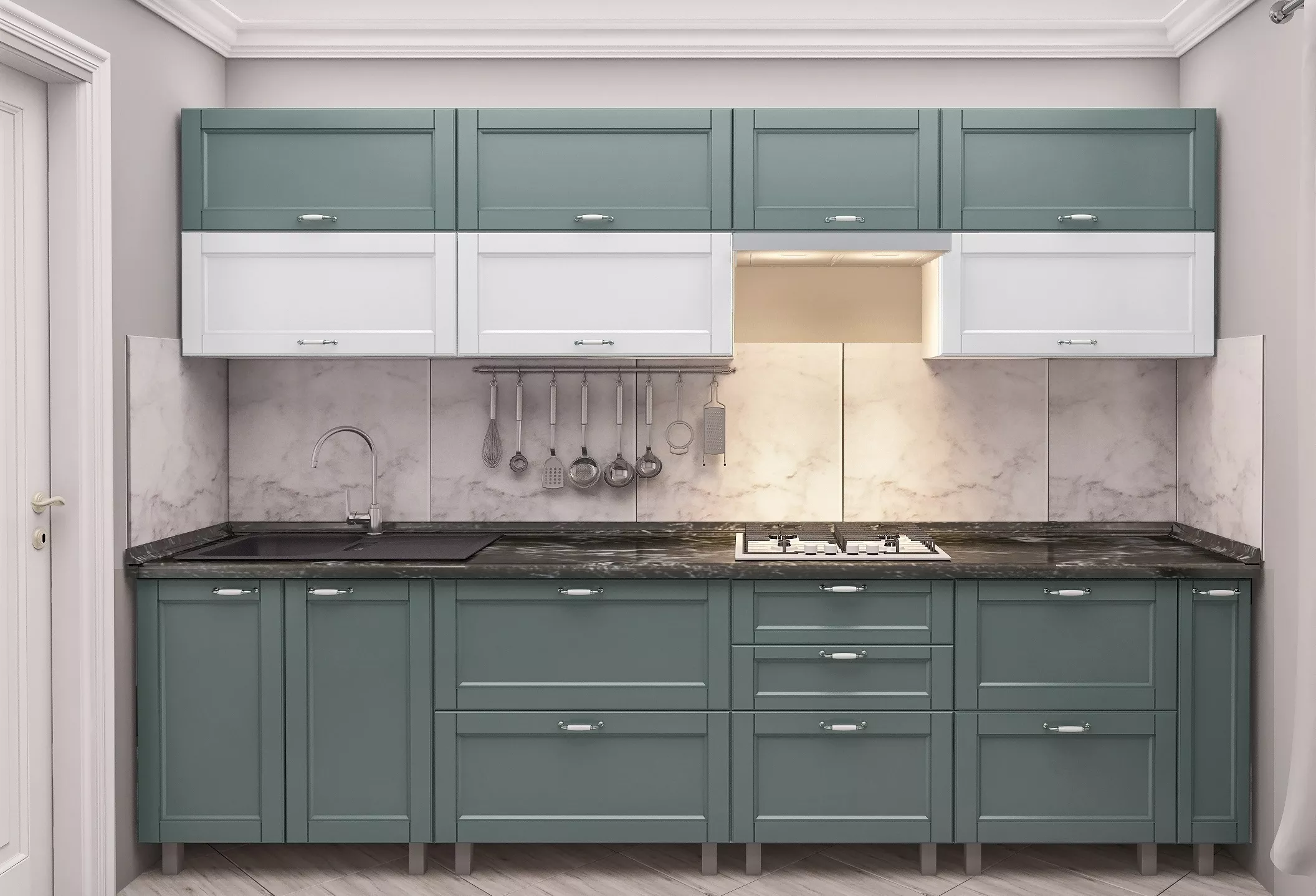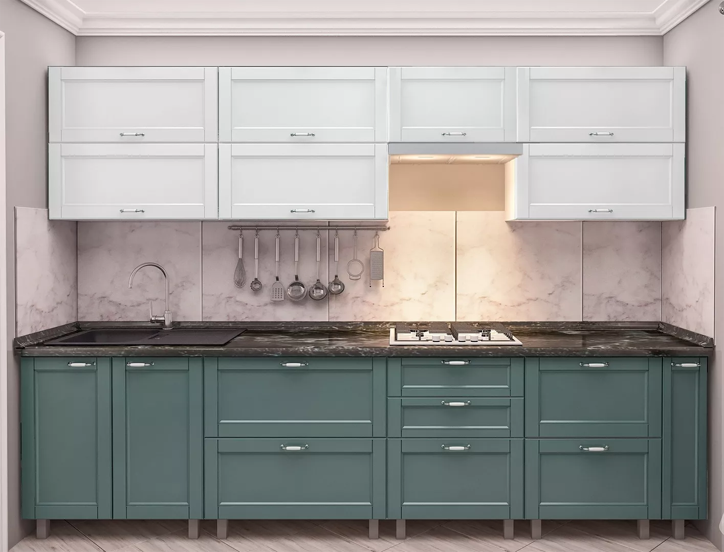 Кухня Bafimob Квадро 3.0 м, МДФ крашенный, фасад Модерн, Белый-матовый/Салатовый-матовый