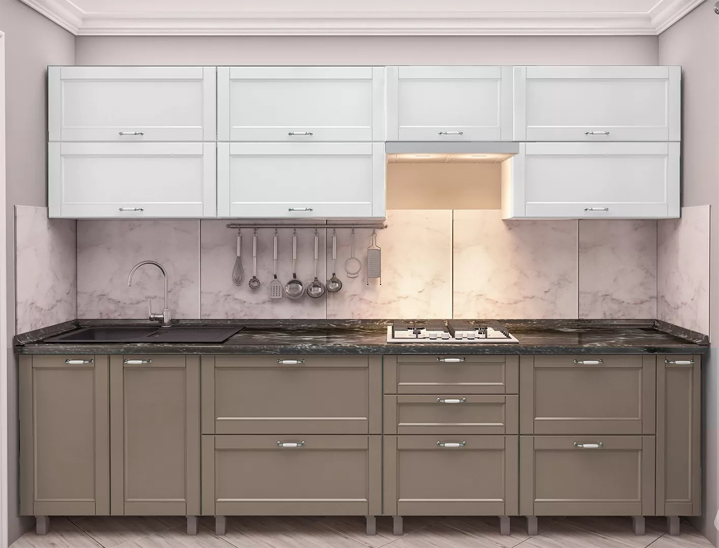 Кухня Bafimob Квадро 3.0 м, МДФ крашенный, фасад Модерн, Белый-матовый/Капучино-матовый