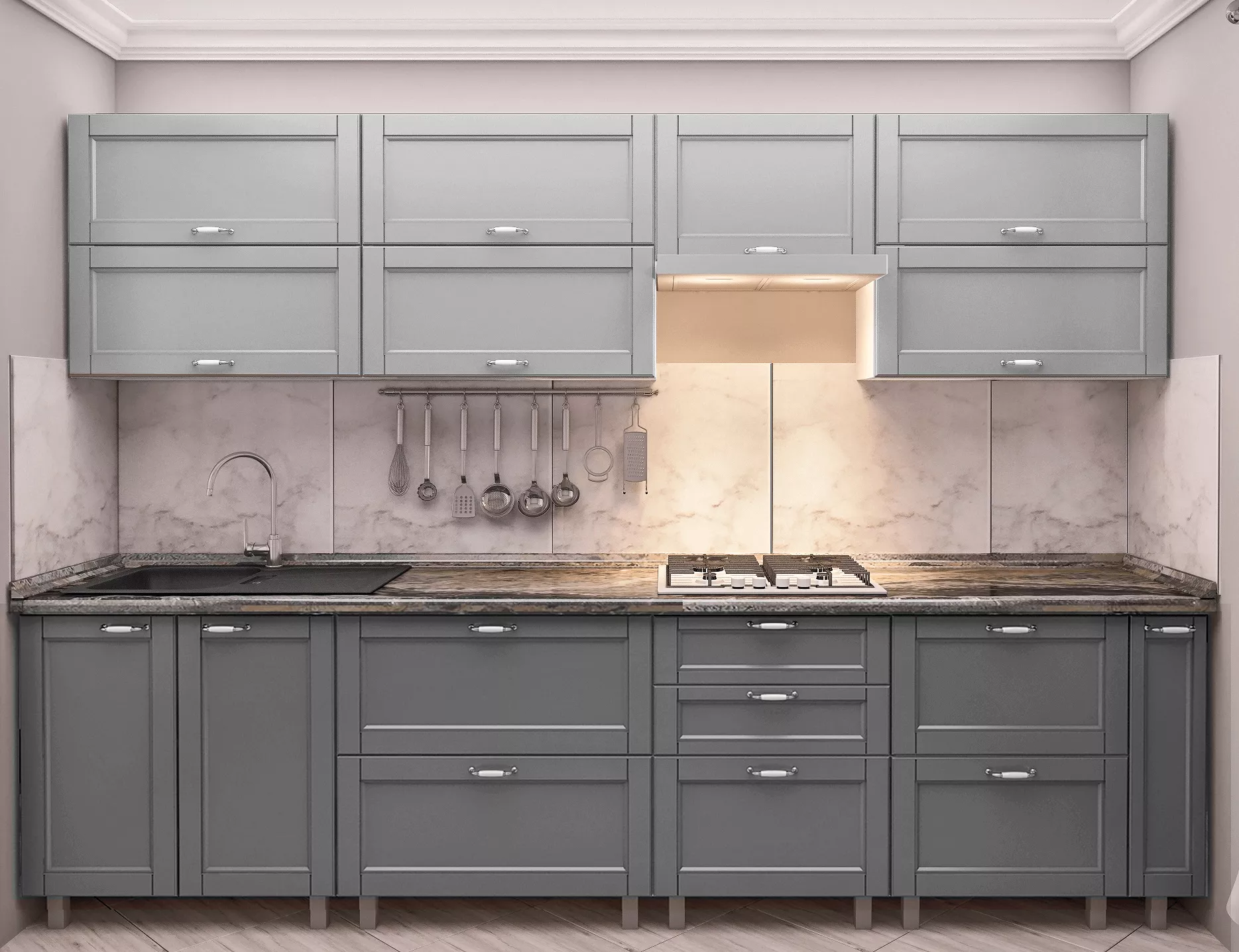 Кухня Bafimob Квадро 3.0 м, МДФ крашенный, фасад Модерн, Светло серый-матовый/Серый-матовый
