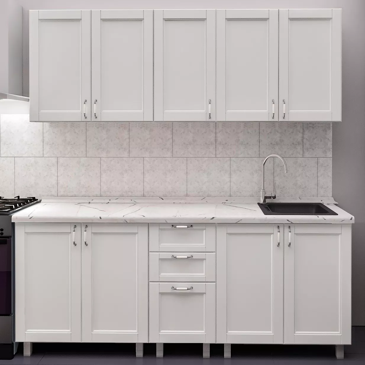 Кухня Bafimob Лена 2.0 м, МДФ крашенный, фасад Модерн, Белый матовый