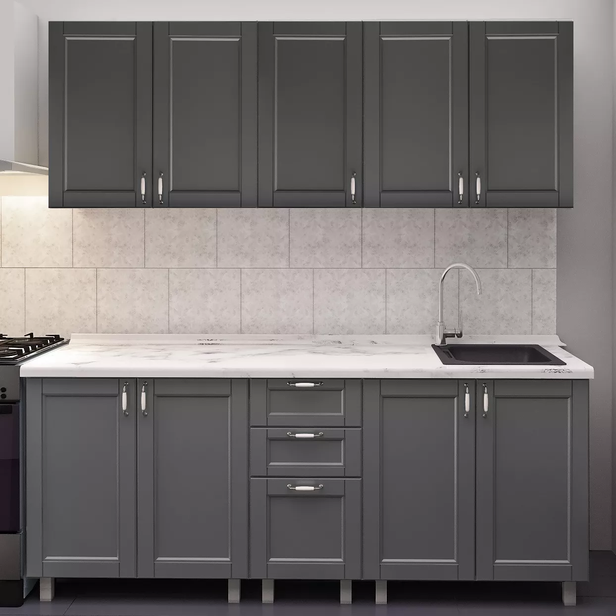 Кухня Bafimob Лена 2.0 м, МДФ крашенный, фасад Модерн, Серый матовый
