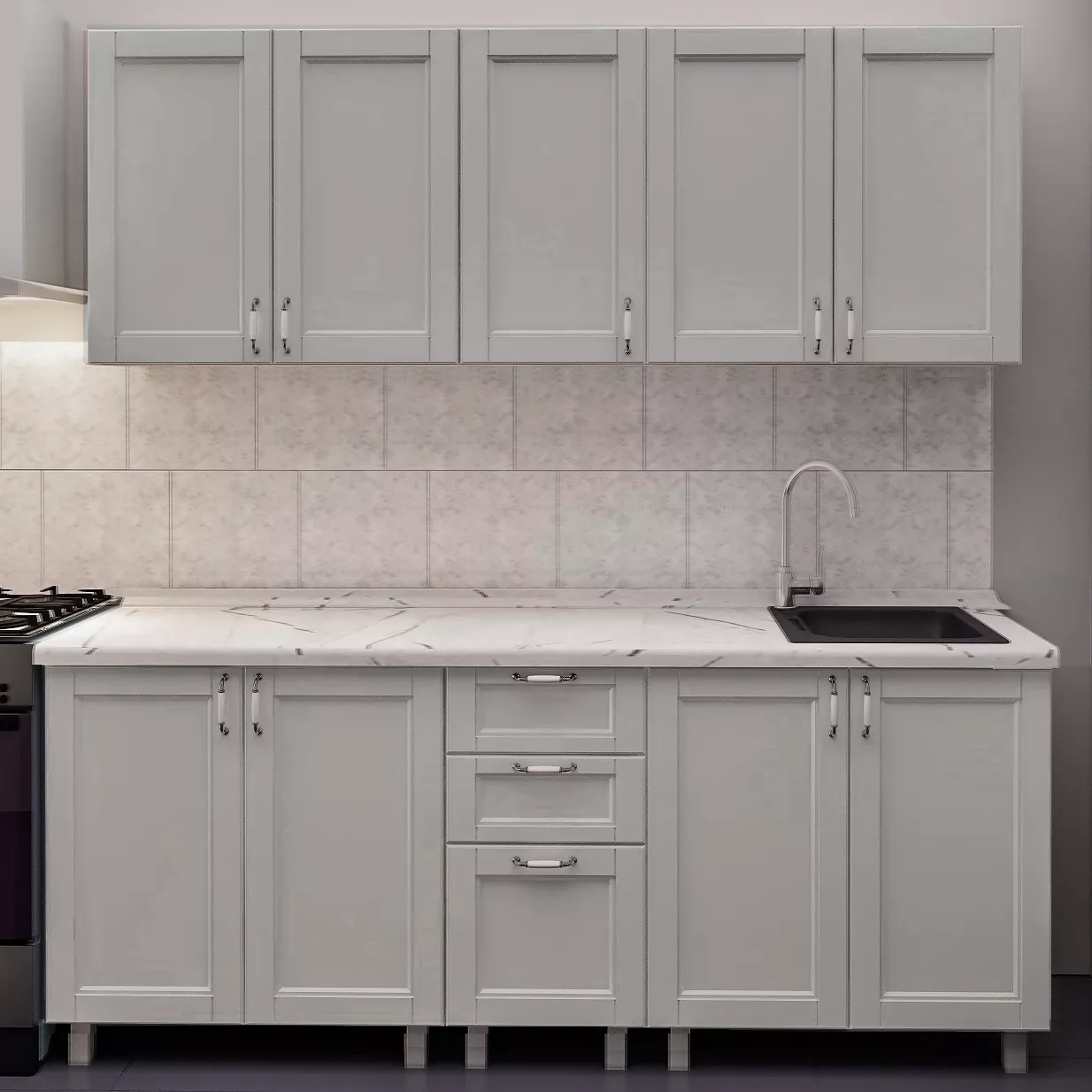 Кухня Bafimob Лена 2.0 м, МДФ крашенный, фасад Модерн, Светло серый-матовый