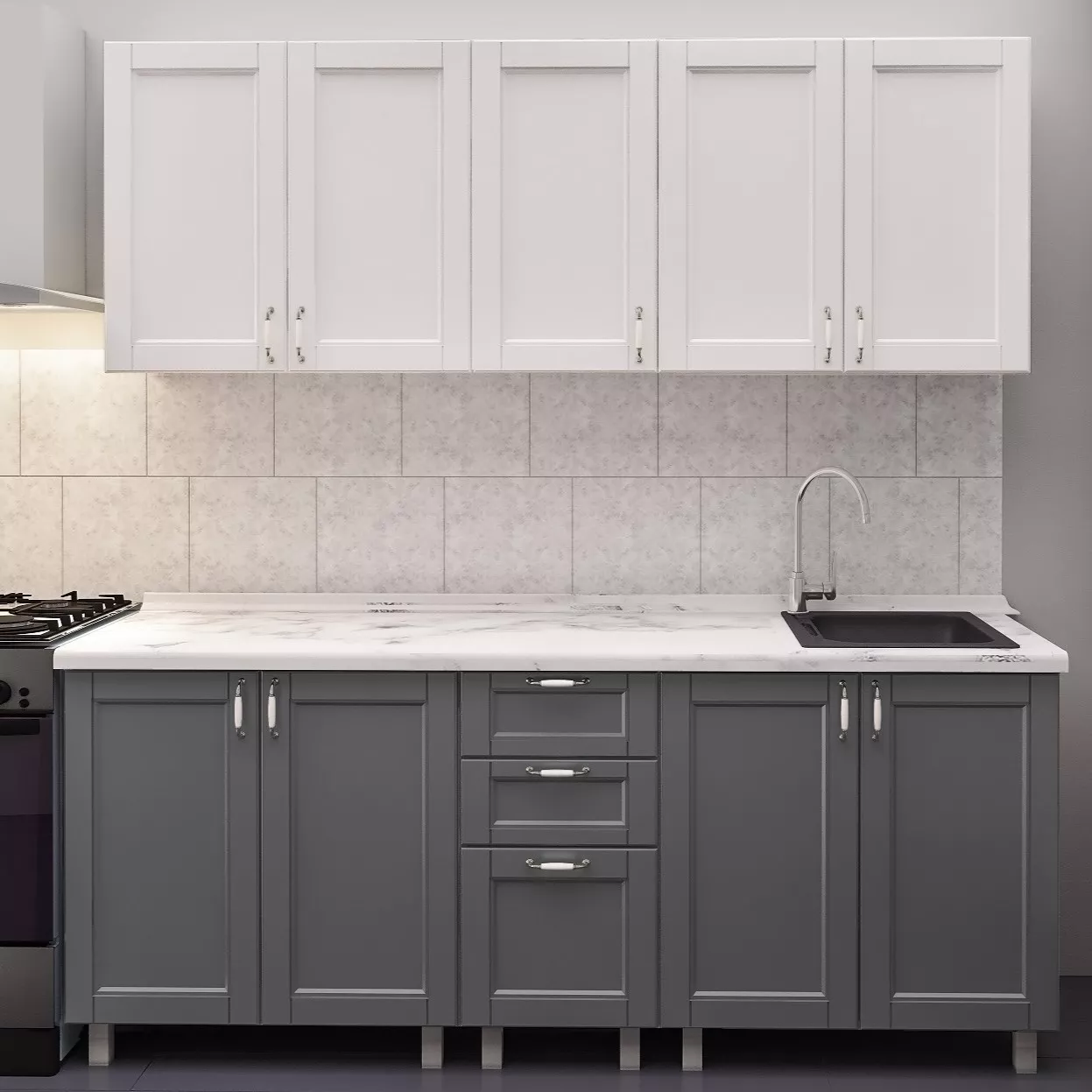 Кухня Bafimob Лена 2.0 м, МДФ крашенный, фасад Модерн, Белый-матовый/Серый-матовый