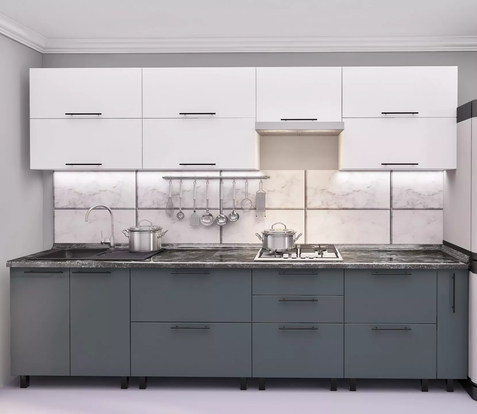 Кухня Bafimob Квадро 3.0 м, МДФ крашенный, фасад Гладкий, Белый-матовый/Серый-матовый