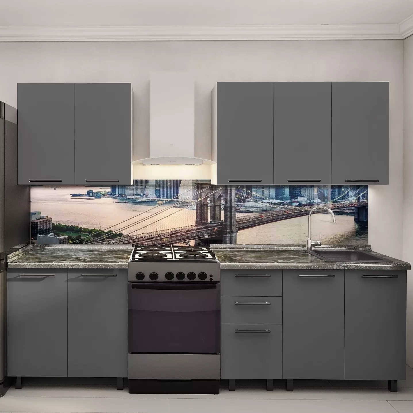Кухня Bafimob Лена 2.0 м, МДФ крашенный, фасад Гладкий, Серый матовый