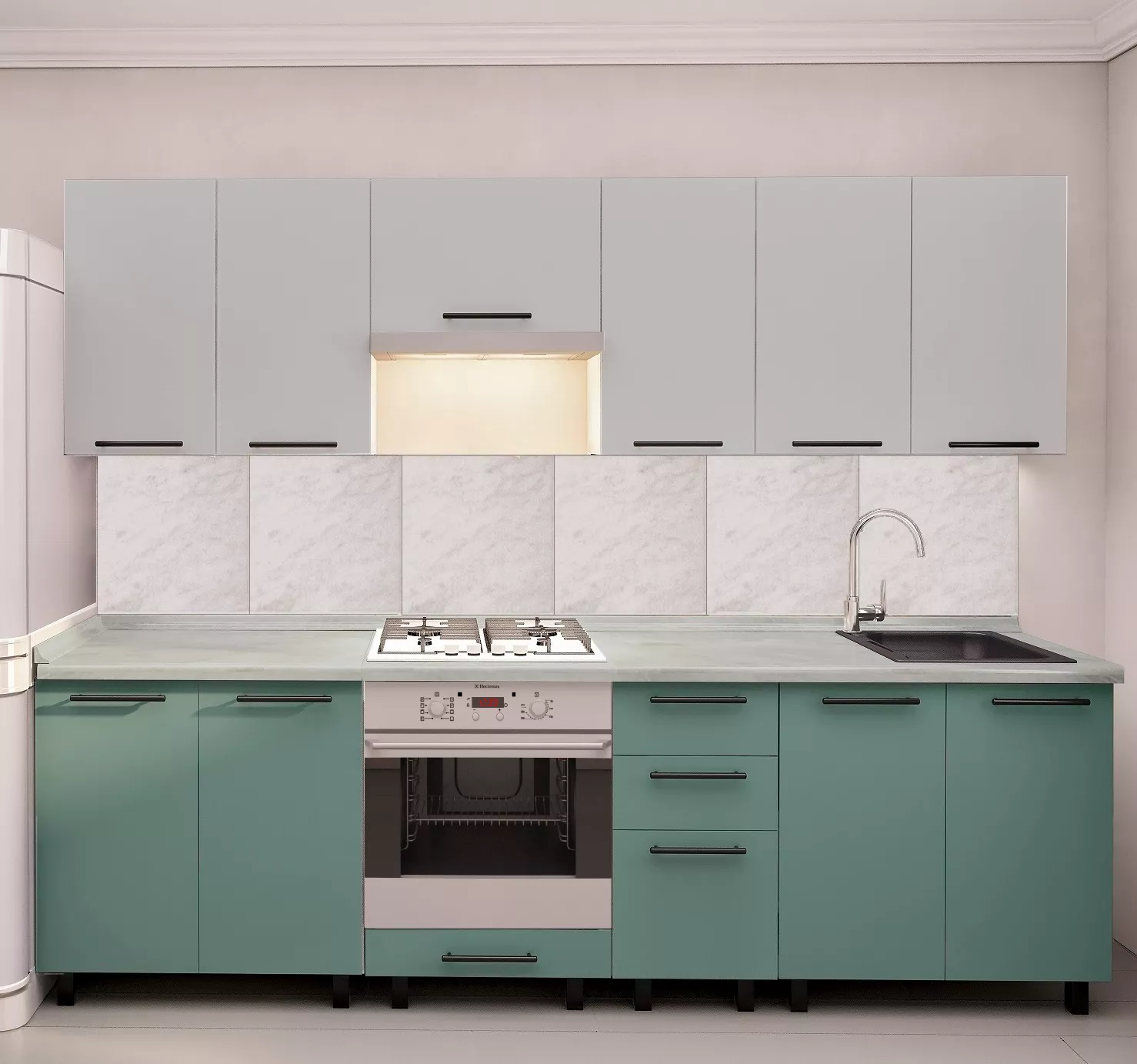 Кухня Bafimob Юля 2.6 м, МДФ крашенный, фасад Гладкий, Светло серый-матовый/Салатовый-матовый